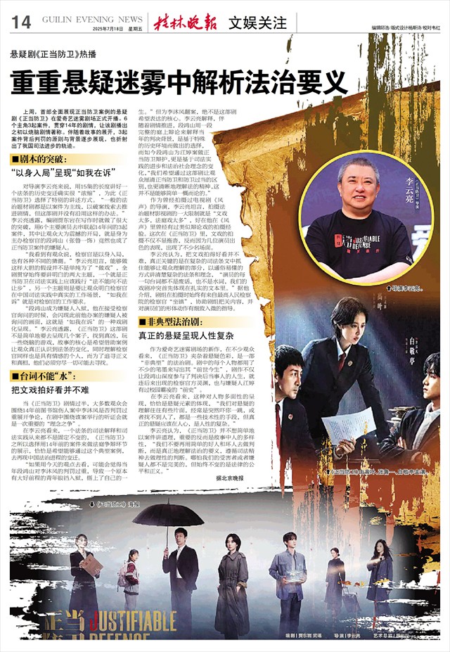李云亮认为,《正当防卫》并不想简单地以案件讲道理,重要的反而是故事中人的多样性,“我们不要再用简单的好人和坏人去做判断,而是真正地理解法治的要义,遵循司法精神去做理性的判断。哪怕我们的受害者或者嫌疑人都不是完美的,但始终不变的是法律的公平和正义。”