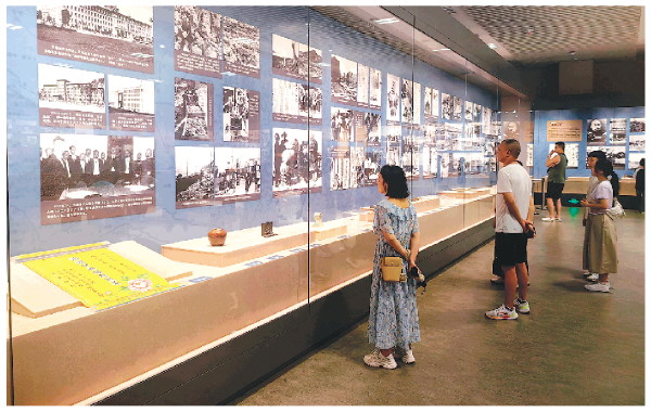 今年是中国人民抗日战争暨世界反法西斯战争胜利80周年。“铭记历史 共筑国梦——日本侵略中国东北史实展”正在桂林博物馆临展2号厅展出,吸引了众多市民的关注。图为7月23日下午,市民在桂林博物馆临展2号厅参观。记者邢刚 摄