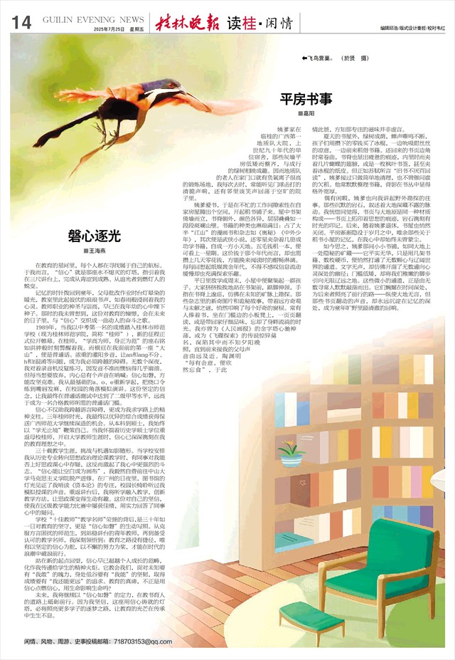学校“十佳教师”“教学名师”荣誉的背后,是三十年如一日对教育的坚守,更是“信心如磐”的生动写照。从克服方言困扰的师范生,到站稳讲台的青年教师,再到备受认可的教学名师,我深刻领悟到:教育之路没有捷径,唯有以坚定的信心为舵,以不懈的努力为桨,才能在时代的浪潮中破浪前行。