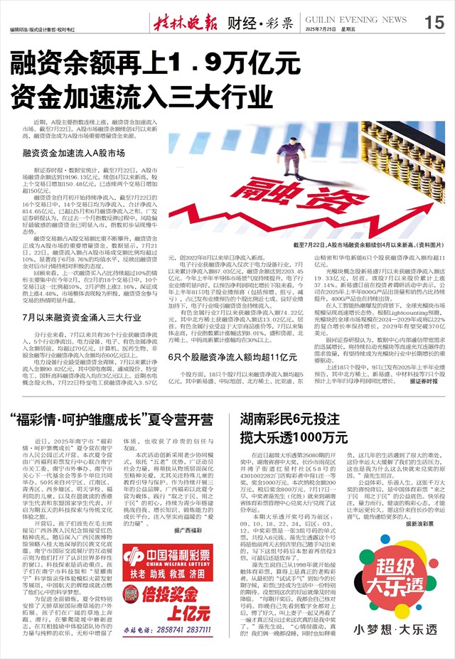 资金加速流入三大行业   近期,A股主要指数连续上涨,融资资金加速流入市场。截至7月22日,A股市场融资余额续创4月以来新高,融资资金成为A股市场重要增量资金来源。