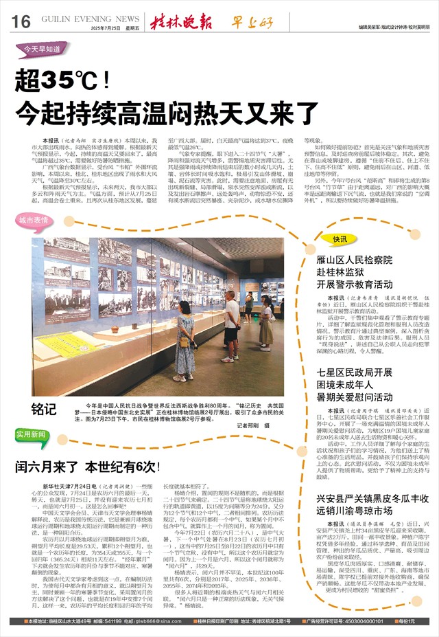 铭记   今年是中国人民抗日战争暨世界反法西斯战争胜利80周年。“铭记历史 共筑国梦——日本侵略中国东北史实展”正在桂林博物馆临展2号厅展出,吸引了众多市民的关注。图为7月23日下午,市民在桂林博物馆临展2号厅参观。记者邢刚 摄