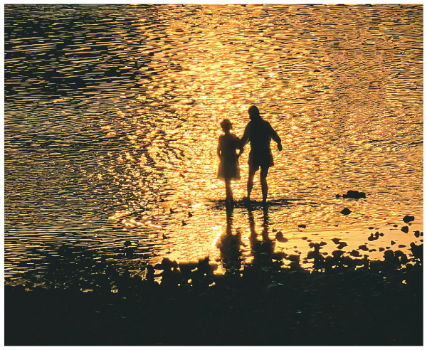 7月27日傍晚6点多,虞山桥下的漓江水面被夕阳映照成金色,市民来到岸边浅水区戏水玩耍,像踏入了一条金色的河流。需要提醒的是,景色再美,亲水玩耍也一定要注意安全,预防溺水。 记者邢刚 摄