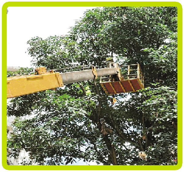 工人正在凤凰小区修剪树木。