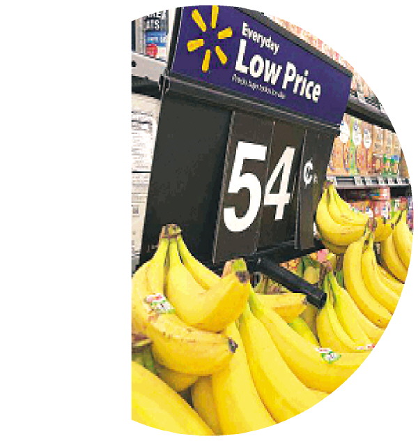 这张5月21日在美国加利福尼亚州洛杉矶县一家沃尔玛超市拍摄的图片显示,从哥斯达黎加进口的香蕉价格已经涨至每磅54美分。 新华社发