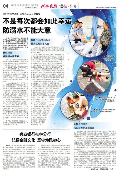 近日,天气持续炎热,戏水纳凉成了不少人的消暑选择。尽管大家都自认为“准备充分”,可溺水事故仍时有发生。全州县休假辅警和阳朔杨堤筏工先后成功救起溺水市民。救援人员提醒:防溺水千万不能有丝毫麻痹大意,毕竟不是每次都能如此幸运。