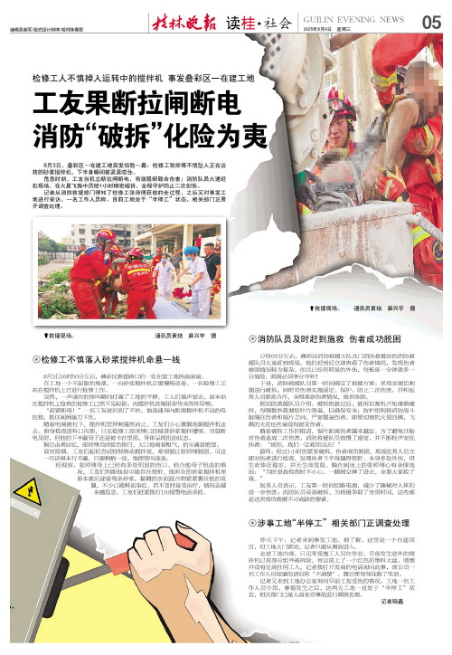 检修工人不慎掉入运转中的搅拌机 事发叠彩区一在建工地