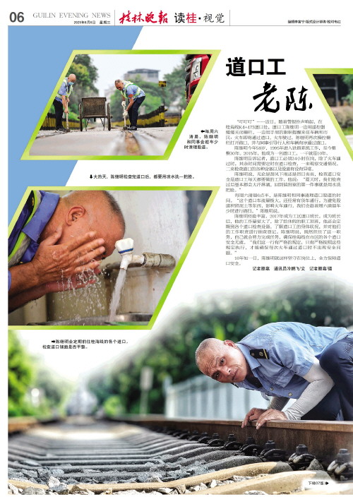 陈继明经验丰富,2017年成为工区道口班长。成为班长后,他的工作量更大了,除了给休假的职工顶班,他还会定期到各个道口检查设备,了解道口工的身体状况,并对他们的工作职责进行抽查登记。陈继明说,既然担任了这一职务,自己就会努力完成任务,确保桂海线在市区的各个道口安全无虞。“我们这一行有严格的规定,只有严格按照这些规定执行,才能确保每次火车通过道口时不出现安全问题。”