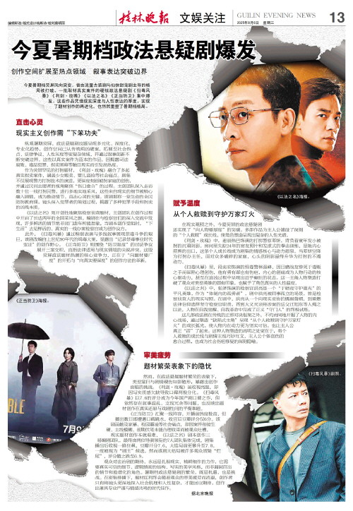 观众对法治剧的期待,永远是扎根现实、精耕细作的力作,它需要真实可信的细节、逻辑缜密的结构、写实的美学风格,而非漏洞百出的情节和脸谱化的角色。暑期档政法悬疑剧的繁荣,既是机遇,也是挑战。在密集排播下,题材红利终会随着观众的审美疲劳而消退,创作者只有将镜头更深地探入社会肌理和人性复杂,才能回应期待,创作出兼具专业严谨与情感共鸣的时代佳作。
