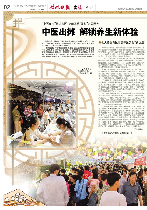 该负责人表示,目前,市卫健委正在对“中医夜市”这一形式进行探索,下一步可能会将其办成常态化的活动。“比如说,市中医医院、市中西医结合医院可以利用本院优势,在院内开展中医夜市活动。”据了解,市卫健委将以本次漓江中医夜市为起点,继续举办更多接地气、惠民生的活动,让中医药更好地滋养大家的生活。