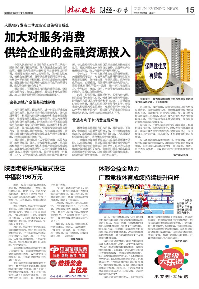 具体而言,报告提出,发挥货币政策总量和结构双重功能。保持流动性充裕,持续推动社会综合融资成本下降,营造有利于扩消费的金融环境。强化结构性货币政策工具激励,落实好服务消费与养老再贷款政策工具,用好用足支农支小再贷款额度,加大服务消费重点领域的金融支持。