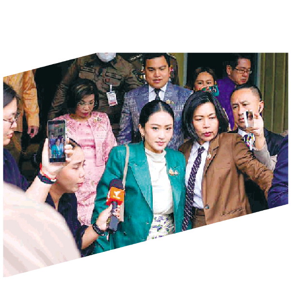 8月21日,佩通坦(前)抵达位于曼谷的泰国宪法法院。新华社发