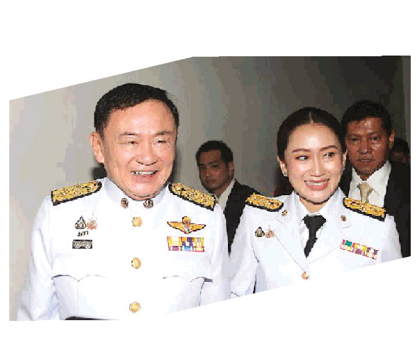 2024年8月18日,佩通 坦(右)与其父亲、泰国前总理他信(左)抵达位于曼谷的为泰党总部。 新华社发