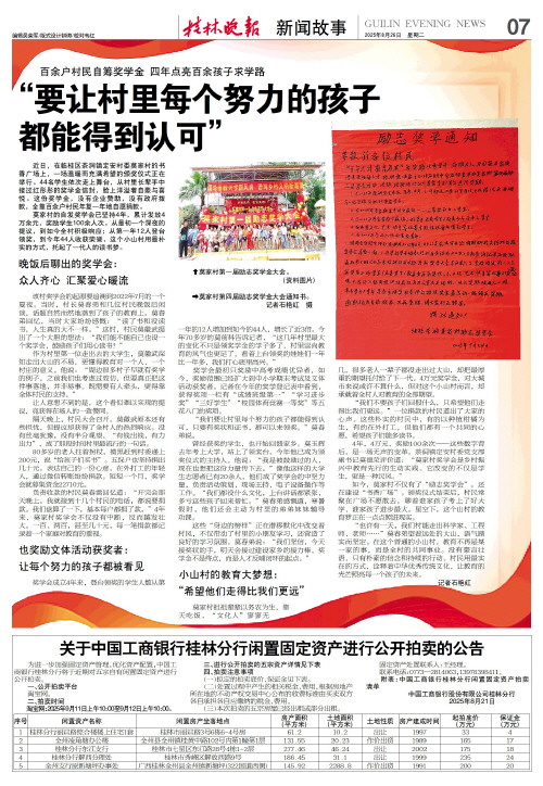 近日,在临桂区茶洞镇定安村委莫家村的书香广场上,一场温暖而充满希望的颁奖仪式正在举行。44名学生依次走上舞台,从村里长辈手中接过红彤彤的奖学金信封,脸上洋溢着自豪与喜悦。这份奖学金,没有企业赞助,没有政府拨款,全靠百余户村民年复一年地自愿捐款。