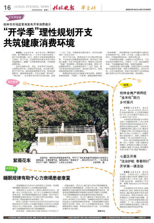本报讯(记者周子琪 通讯员马琼)暑假临近结束,新学期即将开启,广大学生与家长也迎来一波开学消费高峰。近日,桂林市市场监管局围绕学习用品、电子产品、生活物资和饮食安全等方面发布温馨提示,提醒广大消费者理性消费,共筑健康消费环境。