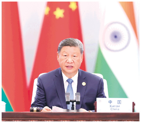 习近平强调,上海合作组织在成立宣言和组织宪章中开宗明义指出,要推动国际政治经济秩序朝着更加民主、公正、合理的方向发展。24年来,组织秉持互信、互利、平等、协商、尊重多样文明、谋求共同发展的“上海精神”,坚持地区事务共商、平台机制共建、合作成果共享,提出并实施许多全球治理新理念,日益成为全球治理体系建设和改革的积极推动力量。面对加速演进的世界百年未有之大变局,上海合作组织要发挥引领作用,为维护世界和平稳定贡献“上合力量”,为推动全球开放合作展现“上合担当”,为弘扬全人类共同价值作出“上合示范”,为捍卫国际公平正义采取“上合行动”,当好践行全球治理倡议的表率。