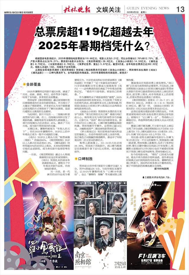 从掀起全民观影热潮的《南京照相馆》到突破二维动画票房天花板的《浪浪山小妖怪》,再到情怀杀拉满的《戏台》《捕风追影》……口碑与票房齐飞,全年龄观影热情高涨,2025年暑期档有何新趋势、新亮点?