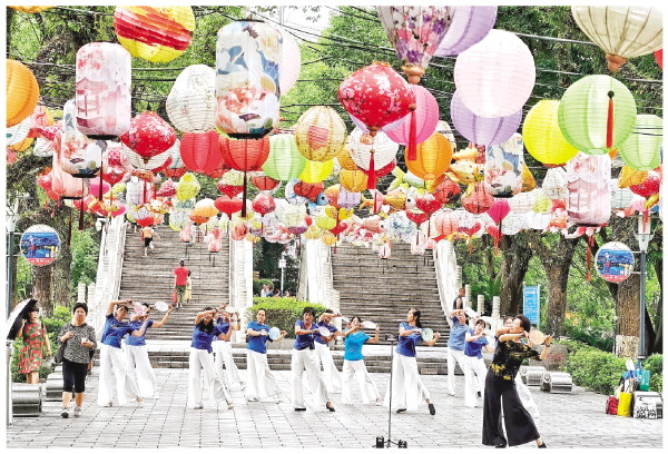 近日,一群市民在古南门前的小广场欢快起舞,翩翩的舞姿呈现出对生活的热爱,引得路过的行人纷纷驻足观看。 记者滕嘉 摄