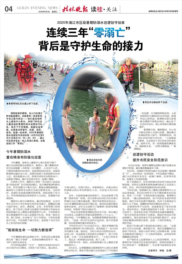 从严密的水上巡逻到深入人心的宣传教育,从志愿者的坚守到家长安全意识的提升,桂林的防溺水工作已经形成了一张覆盖面广、社会参与度高的安全防护网。