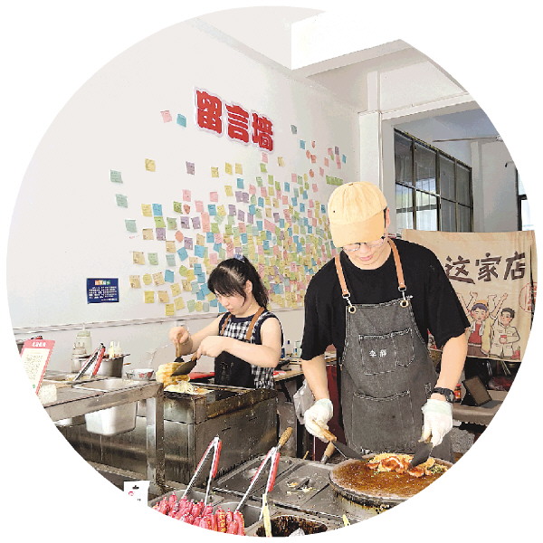 小店老板郝晓莹和李崇畅分别忙着做烤冷面和煎饼,两人各司其职,配合默契。