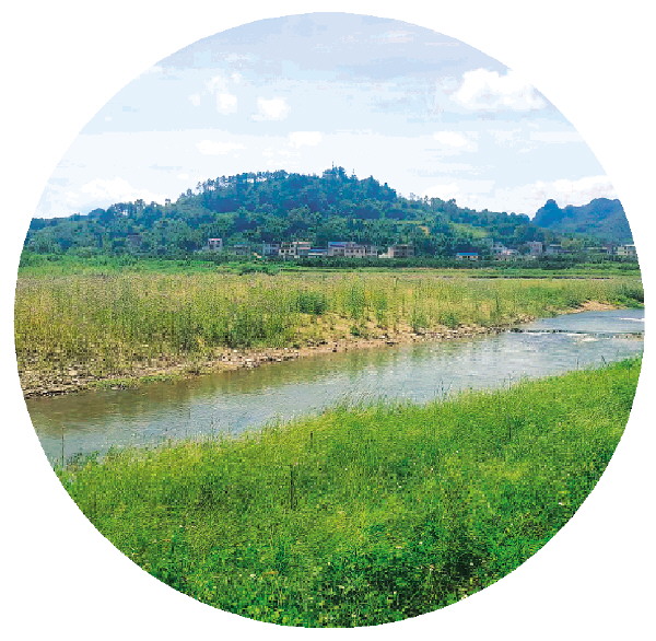 从三联桥上望去,身披绿衣的小岛“卧”在水中,如同一弯明月。荔浦市自然保护地保护中心资源合理利用股股长陈雪晴说,这处河滩原来存在大片裸石滩,有水质污染等问题。修复工程重塑岸滩地形,通过种植本地水生、湿生植被,进行浅滩修复,阻隔人类活动,如今已经恢复了自然生态。沿着三联村继续朝荔江湾前行,能看到自成阶梯状的水流,这是修复工程疏浚河道的同时,在支流塑造了梯形地形,形成层级水流,可以过滤水质。