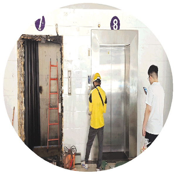 桂圳城市领地小区居民正在使用新装好的电梯。