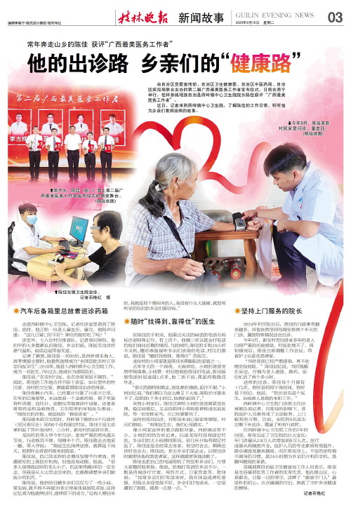 恭城瑶族自治县卫生健康局工作人员表示,陈佳是全县基层医务工作者的优秀代表。他扎根山区、心系群众,日复一日的坚守,诠释了“健康守门人”最质朴的初心;点点滴滴的付出,铸就了守护乡亲健康的榜样。