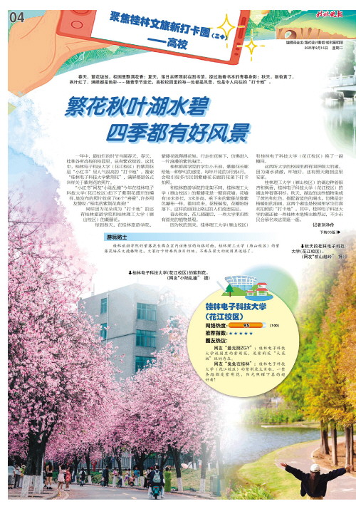 一年中,最灿烂的时节当属春天。春天,桂林各所高校的校园里,总有繁花绽放。这其中,桂林电子科技大学(花江校区)的紫荆花是“小红书”里人气很高的“打卡地”。搜索“桂林电子科技大学紫荆花”,满屏都是各式各样关于紫荆花的照片。