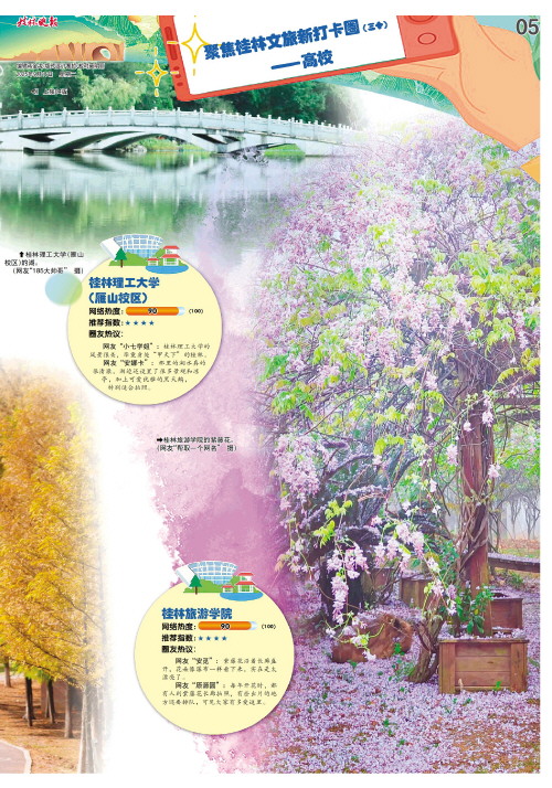 同样因为花朵成为“打卡地”的还有桂林旅游学院和桂林理工大学(雁山校区)的紫藤花。