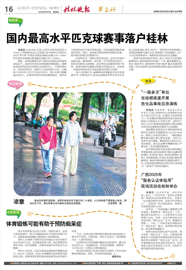国内最高水平匹克球赛事落户桂林   本报讯(记者刘琪)日前,记者从市体育局获悉,9月18日,中国网球协会正式批复,将与桂林市共同举办2025“李宁杯”中国匹克球巡回赛总决赛(CPC-2000)和中国匹克球城市挑战赛总决赛(CPC-T2000)。