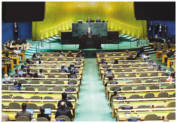 26日,在位于纽约的联合国总部,以色列总理内塔尼亚胡在第80届联合国大会一般性辩论发言。众多联合国会员国代表起身离席,退场抗议。 新华社发