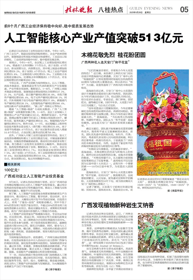 9月26日,记者从自治区财政厅获悉,近日广西成功设立预期总规模100亿元的人工智能产业投资基金,通过充分发挥政府投资基金的引导和撬动作用,推动人工智能与实体经济深度融合,赋能千行百业发展。