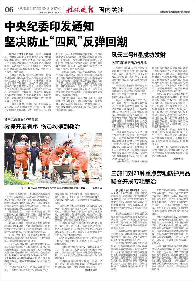 新华社北京9月27日电 国庆、中秋将至,为巩固拓展深入贯彻中央八项规定精神学习教育成果,中央纪委办公厅日前印发《关于国庆中秋期间严格落实中央八项规定精神、从严纠治“四风”的通知》,要求各级纪检监察机关加强监督检查,坚决防止“四风”反弹回潮。