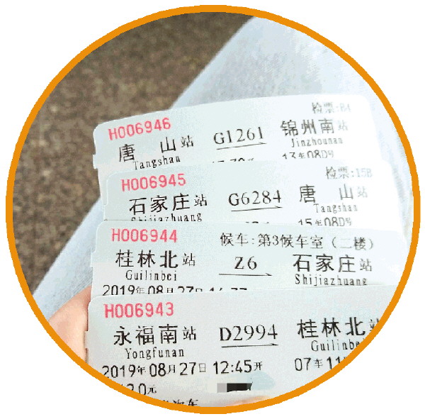 李聃的手机相册里珍藏着一张照片,照片内容是4张车票排在一起,这些车票讲述着一个关于生命最后告别的故事。2019年8月27日,在桂林永福县工作的李聃接到奶奶病危的消息,她焦急地打开手机购票软件准备买票,却发现当天从桂林直达北京的票已售罄,连飞机票都买不到了。