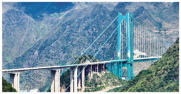 9月28日,世界第一高桥——贵州花江峡谷大桥建成通车。花江峡谷大桥是贵州六枝至安龙高速公路的控制性工程,大桥全长2890米,主跨径1420米,是目前世界山区峡谷第一大跨度钢桁梁悬索桥;其桥面距水面垂直高度625米,是新的世界第一高桥。