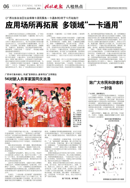 记者9月26日从自治区人大常委会获悉,《广西壮族自治区社会保障卡居民服务一卡通条例》将于12月1日起施行。
