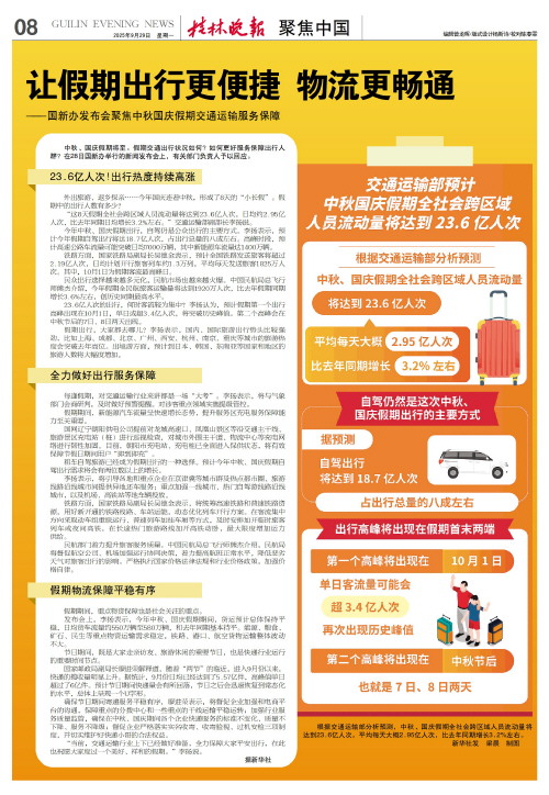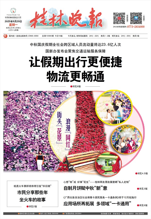 本报讯(记者林扬 通讯员郑长贤 杨飏 张楗桦)国庆、中秋“双节”假期将至。记者从桂林火车站、桂林机场获悉,桂林火车站在假期铁路运输期限内(9月29日至10月10日共12天)预计发送旅客92.0万人次,同比增长6.5%,桂林机场将恢复加密多条航线。