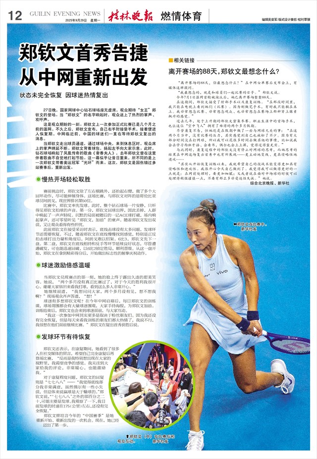 与此同时,康复过程中的郑钦文没有停止对网球的思考,而她思考的结果在中网这场复出首秀中也有所展现——更主动地变线、更具侵略性地进攻……