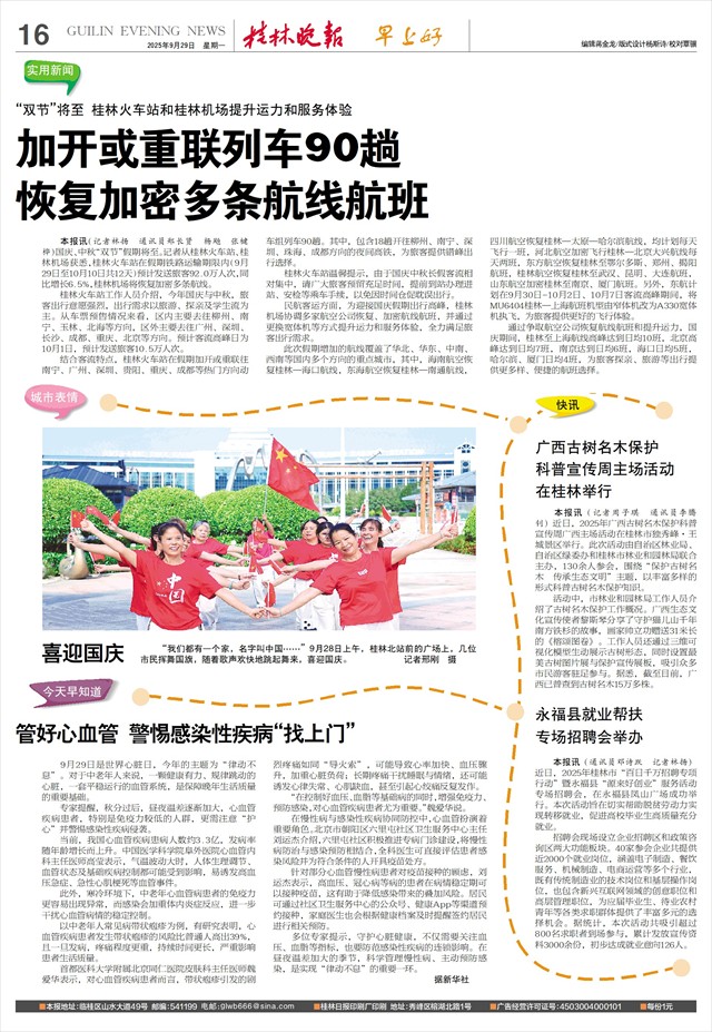 “双节”将至 桂林火车站和桂林机场提升运力和服务体验 加开或重联列车90趟