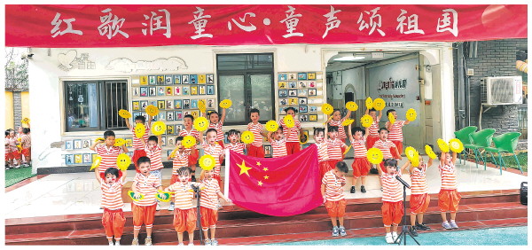 9月28日,桂林小红帽幼儿园(七星园)的小朋友们正在唱红歌,通过他们稚嫩的声音歌颂伟大的祖国。 记者滕嘉 摄