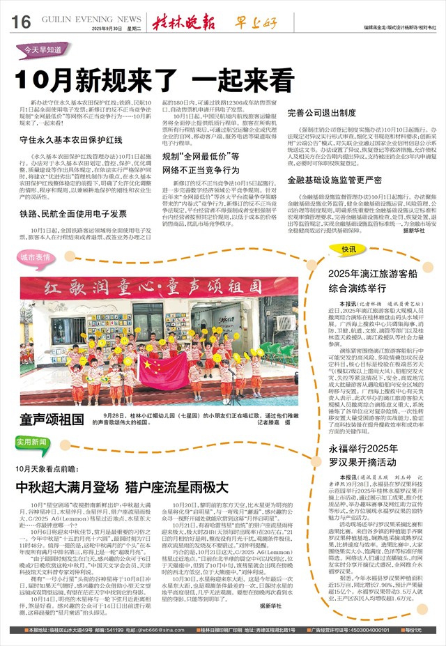 新办法守住永久基本农田保护红线;铁路、民航10月1日起全面使用电子发票;新修订的反不正当竞争法规制“全网最低价”等网络不正当竞争行为……10月新规来了,一起来看!