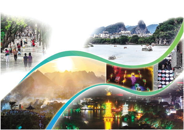 国庆中秋假期期间,桂林各个景区景点游人如织。记者通过无人机视角拍摄了一组图片,展现出桂林假日旅游的火热景象。