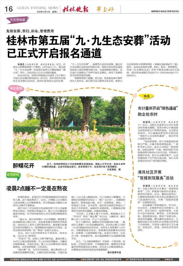 已正式开启报名通道   本报讯(记者周子琪 通讯员唐晨佳)近日,记者从市殡葬管理部门了解到,10月28日上午,第五届“九·九生态安葬”活动将在桂林市天赐园墓园“爱心苑”举办,目前活动已正式开启报名通道。