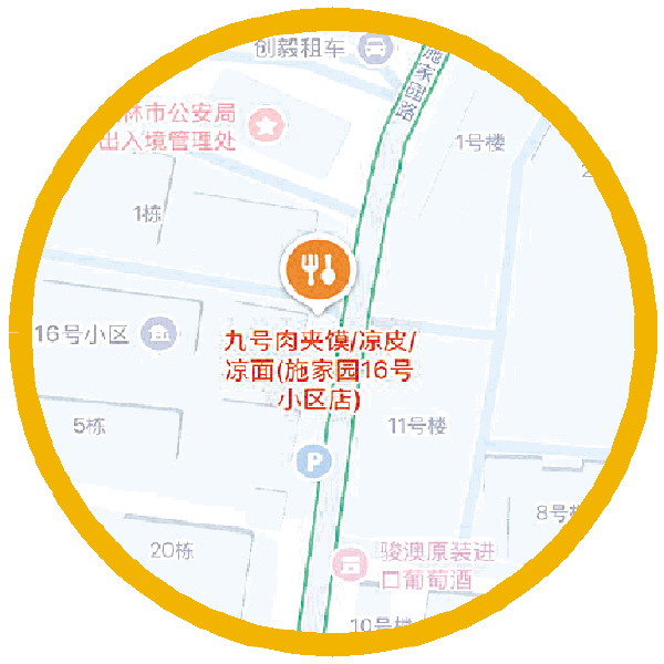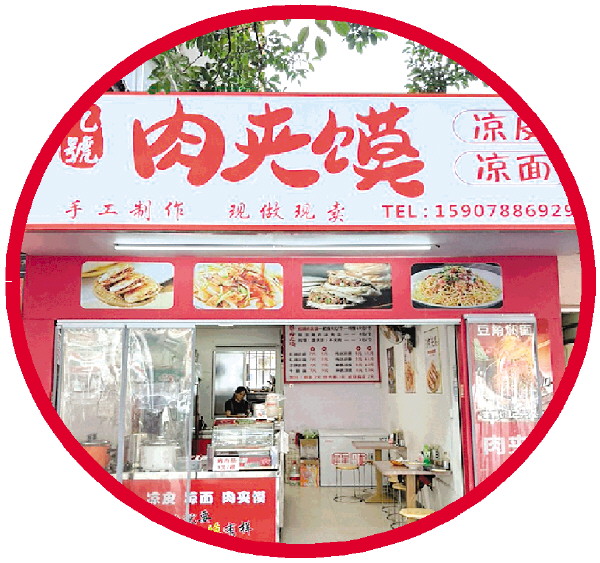 沿着七星区施家园路往中段走,“九号肉夹馍”出现在隐龙居小区的对面。尽管招牌不算显眼,但门口飘散的卤肉香总能吸引路人驻足。