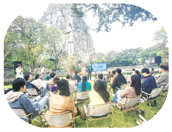 2024桂林艺术节期间,“艺术大讲坛”在独秀峰下开讲。(资料图片)