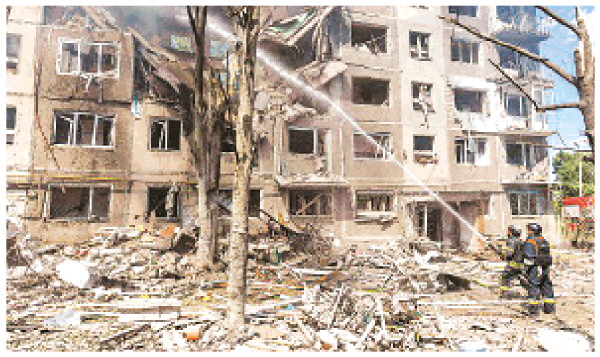 顿巴斯地区遇袭的居民楼。(图源:新民晚报)