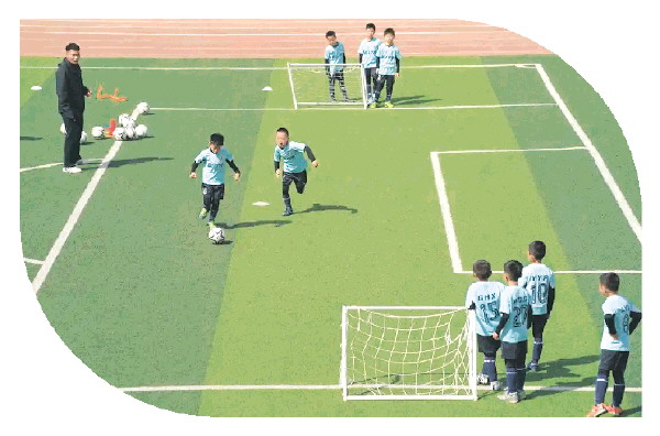 西安市曲江第六小学足球队员在体育课上进行攻防练习。新华社发