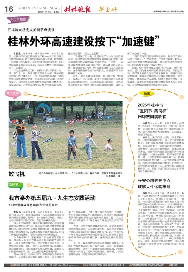 作为我市践行“逝有所安”民生承诺的具体实践,桂林九·九生态安葬活动于每年重阳节前后开展。不同于传统安葬方式,生态安葬不保留骨灰,且全程免除安葬、祭扫、刻名、管理等费用,既减轻了群众丧葬负担,又有效遏制乱埋乱葬现象,是我市扎实推进殡葬改革、推广公益惠民服务的重要举措。