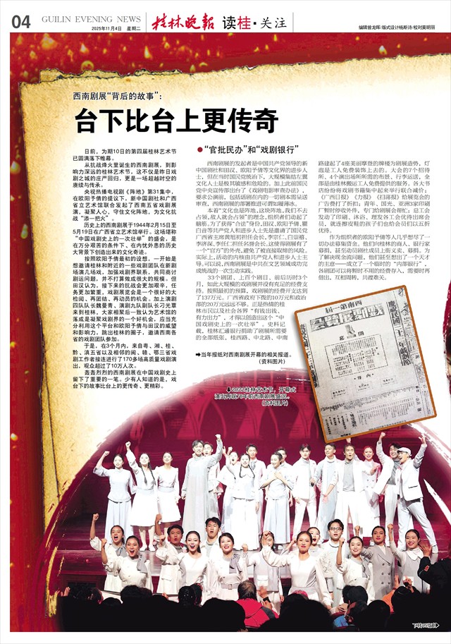 历史上的西南剧展于1944年2月15日至5月19日在广西省立艺术馆举行。这场堪称“中国戏剧史上的一次壮举”的盛会,是在万分艰苦的条件下、在内忧外患的历史大背景下创造出来的文化奇迹。