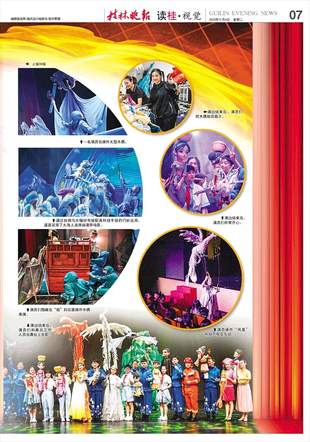 演出结束后,演员们终于放松下来,脸上洋溢着欣慰与喜悦。在即将离开桂林的夜晚,他们纷纷合影留念,记录下这次难忘的演出经历。“木偶是一门激发想象的艺术,我们希望通过它让沉睡的文物‘活’起来,讲述动人的故事。”演员凌莉说,“我们也尝试融入国际化的表演元素与审美语言,借助创新的表达方式吸引更多观众尤其是年轻群体,了解并喜爱上木偶剧。这是我们持续探索和努力的方向。”