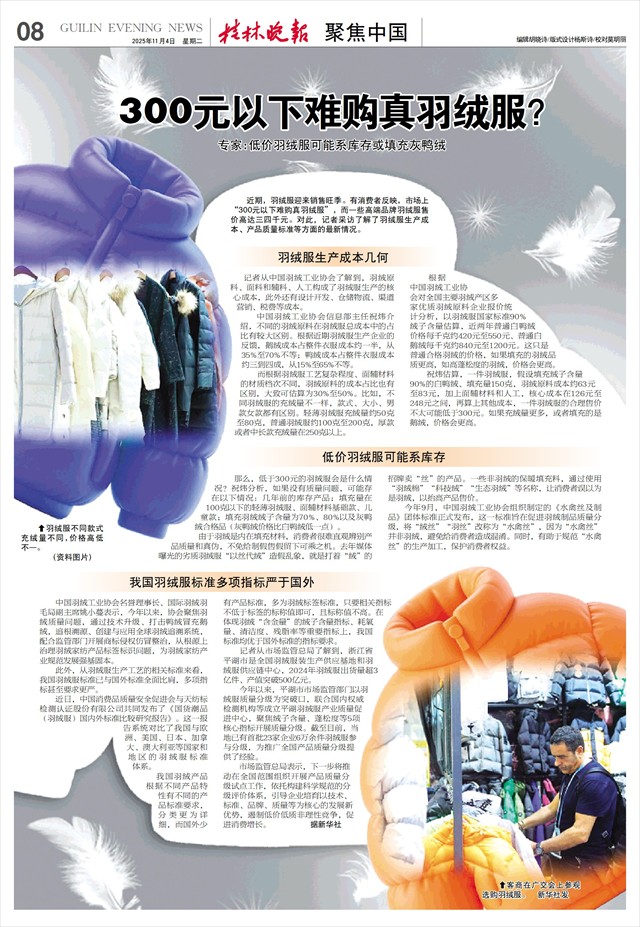 专家:低价羽绒服可能系库存或填充灰鸭绒
